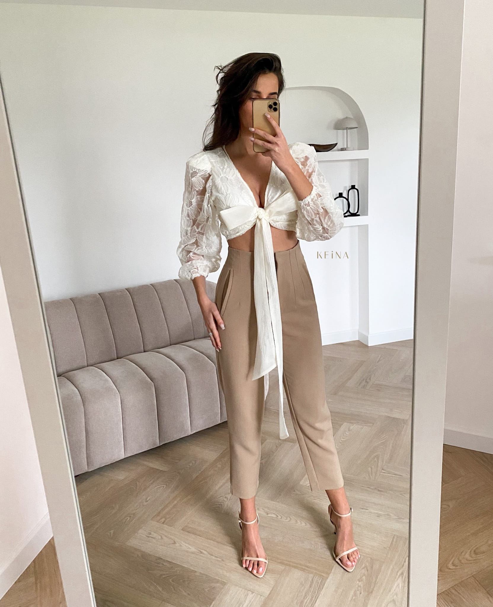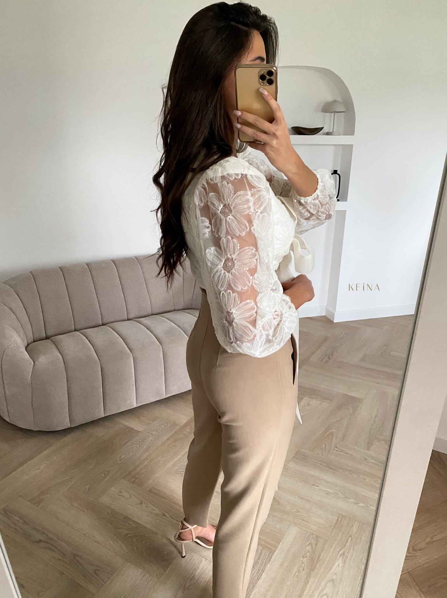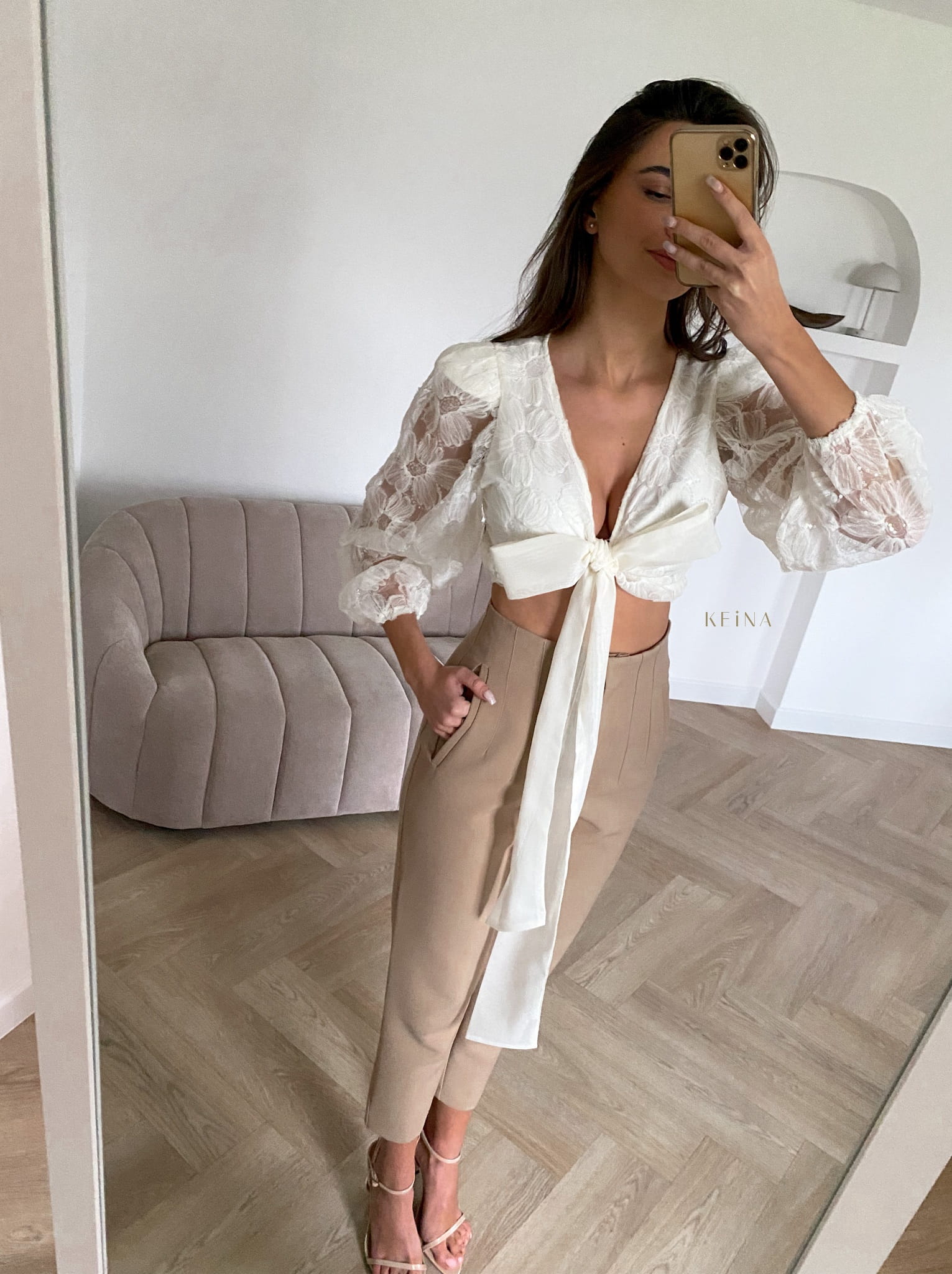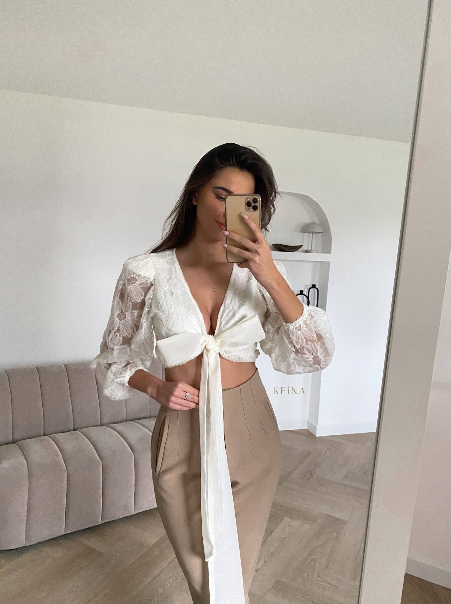 Bluzka Riri - bluzka wiązana na kokardę, transparentne rękawy wyszyte kwiatami. Subtelna i delikatna.