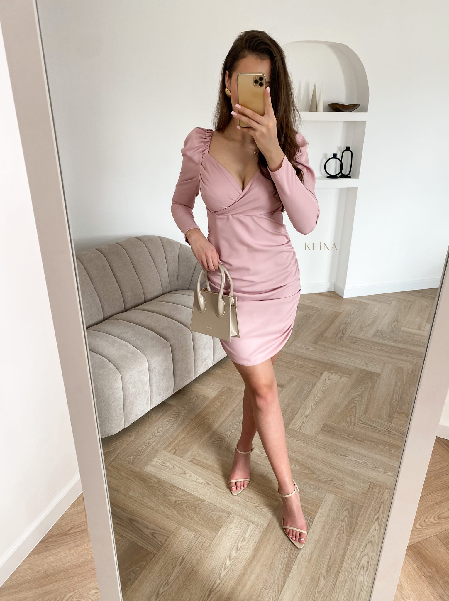Sukienka Nala Pink- dopasowana sukienka z przepięknym dekoltem, dodatkowo ramiona można bardziej odsłonić. Drapowania świetnie maskują niedoskonałości. Uszyta w Polsce.